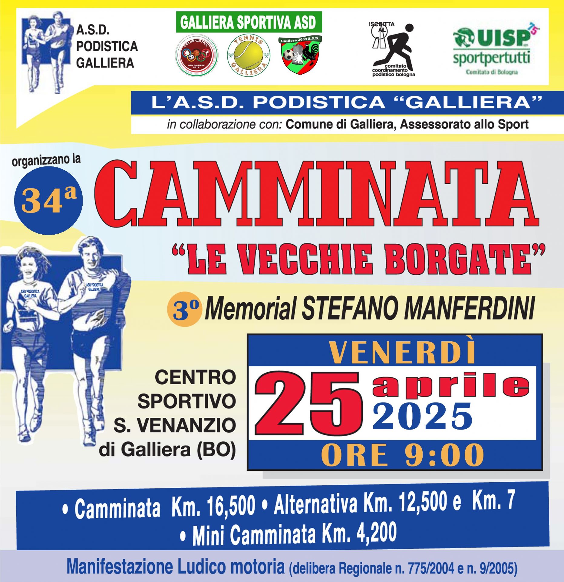 L’ASD Podistica Galliera ringrazia tutti i privati, le ditte e gli enti che hanno contribuito alla buona riuscita della 32ª Camminata «LE VECCHIE BORGATE».