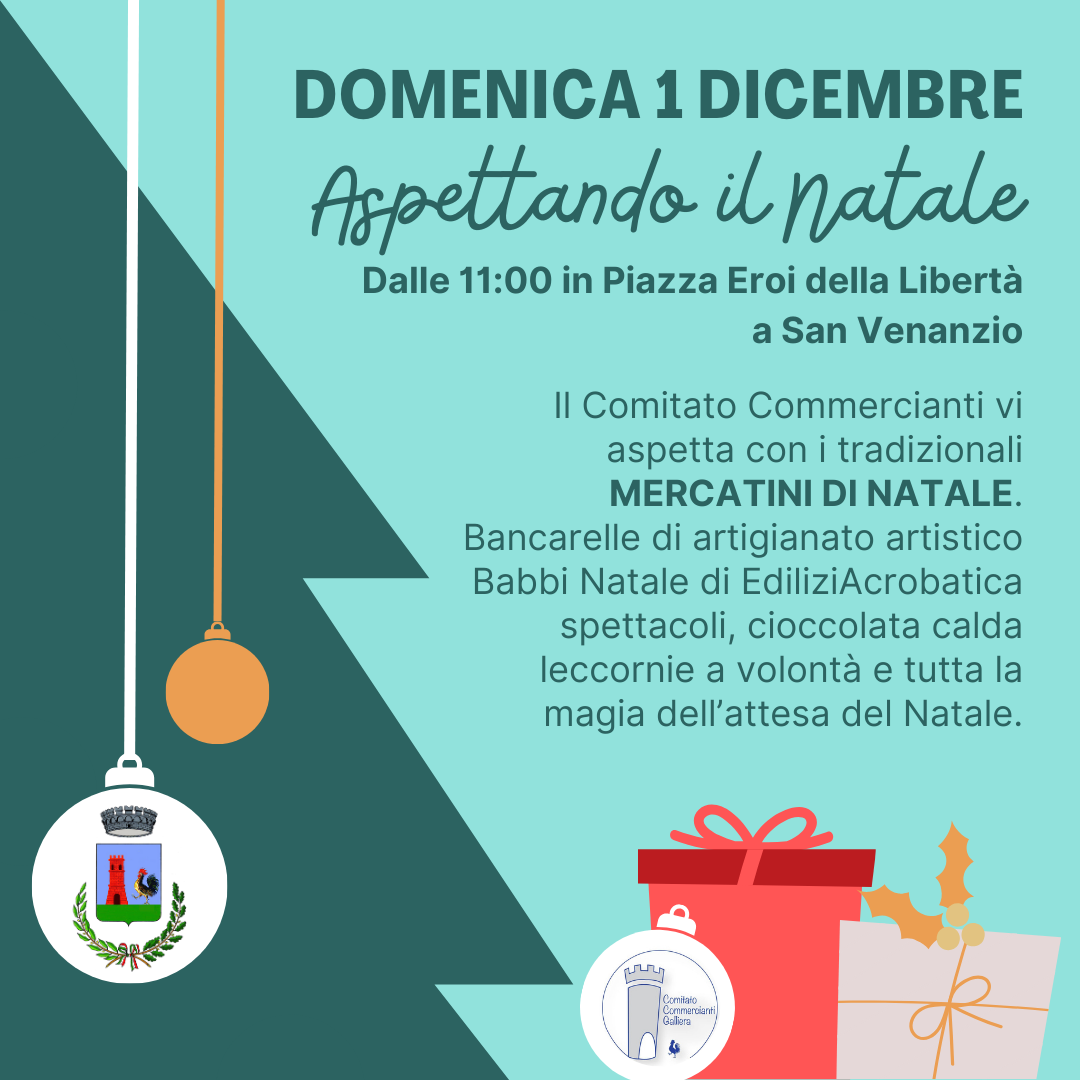 Il Comitato Commercianti vi aspetta con i tradizionali MERCATINI DI NATALE: bancarelle di artigianato artistico, spettacoli, Babbi Natale di EdiliziAcrobatica, cioccolata calda, leccornie a volontà e tutta la magia dell’attesa del Natale.