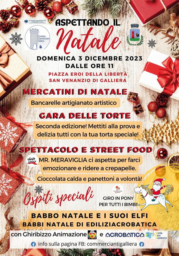 DOMENICA 03 DICEMBRE 2023 in Piazza Eroi della Libertà a San Venanzio, dalle ore 11:00, il Comitato Commercianti organizza i tradizionali Mercatini di Natale!