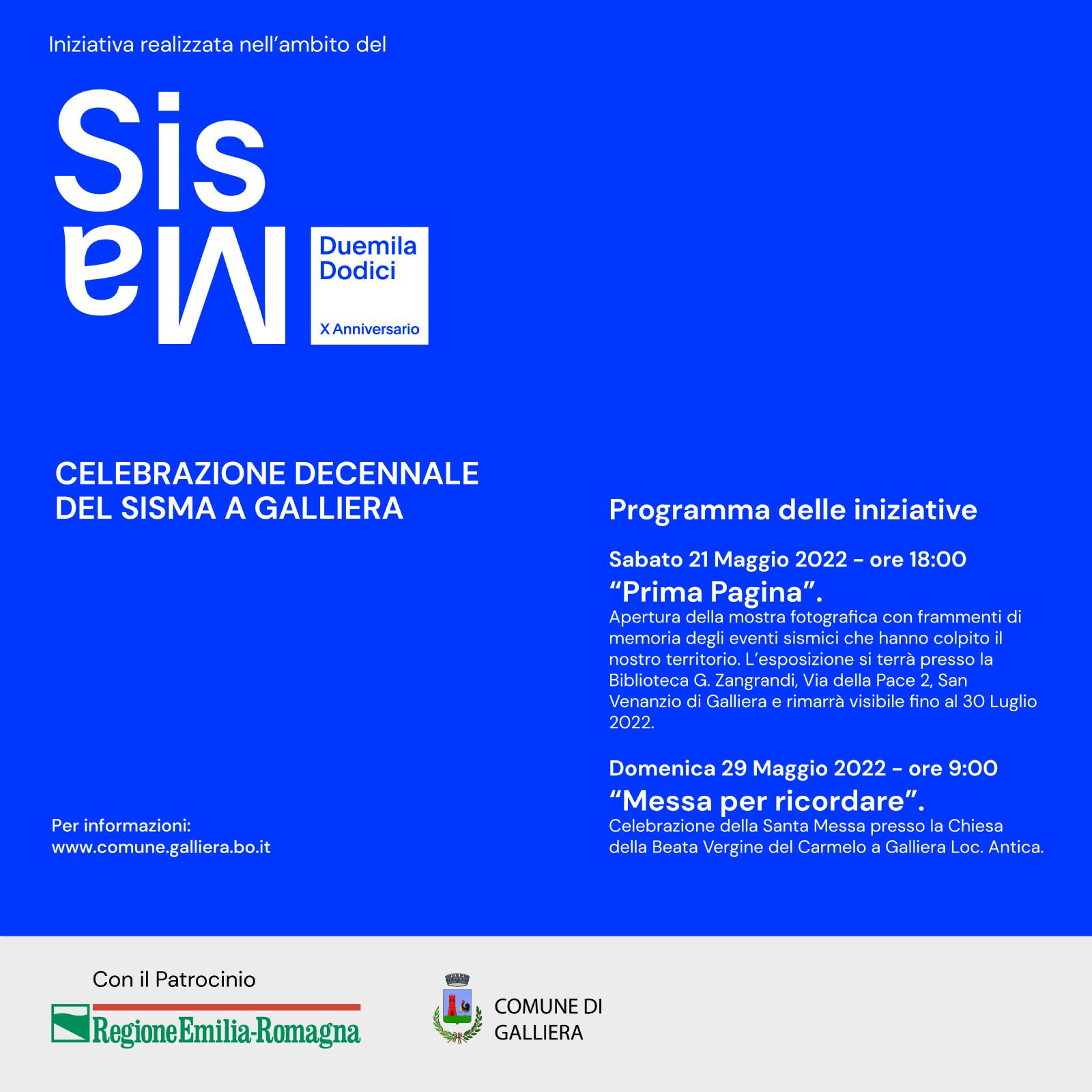 Iniziative realizzate nell'ambito di "Sisma DuemilaDodici - X Anniversario", con il patrocinio della Regione Emilia Romagna.