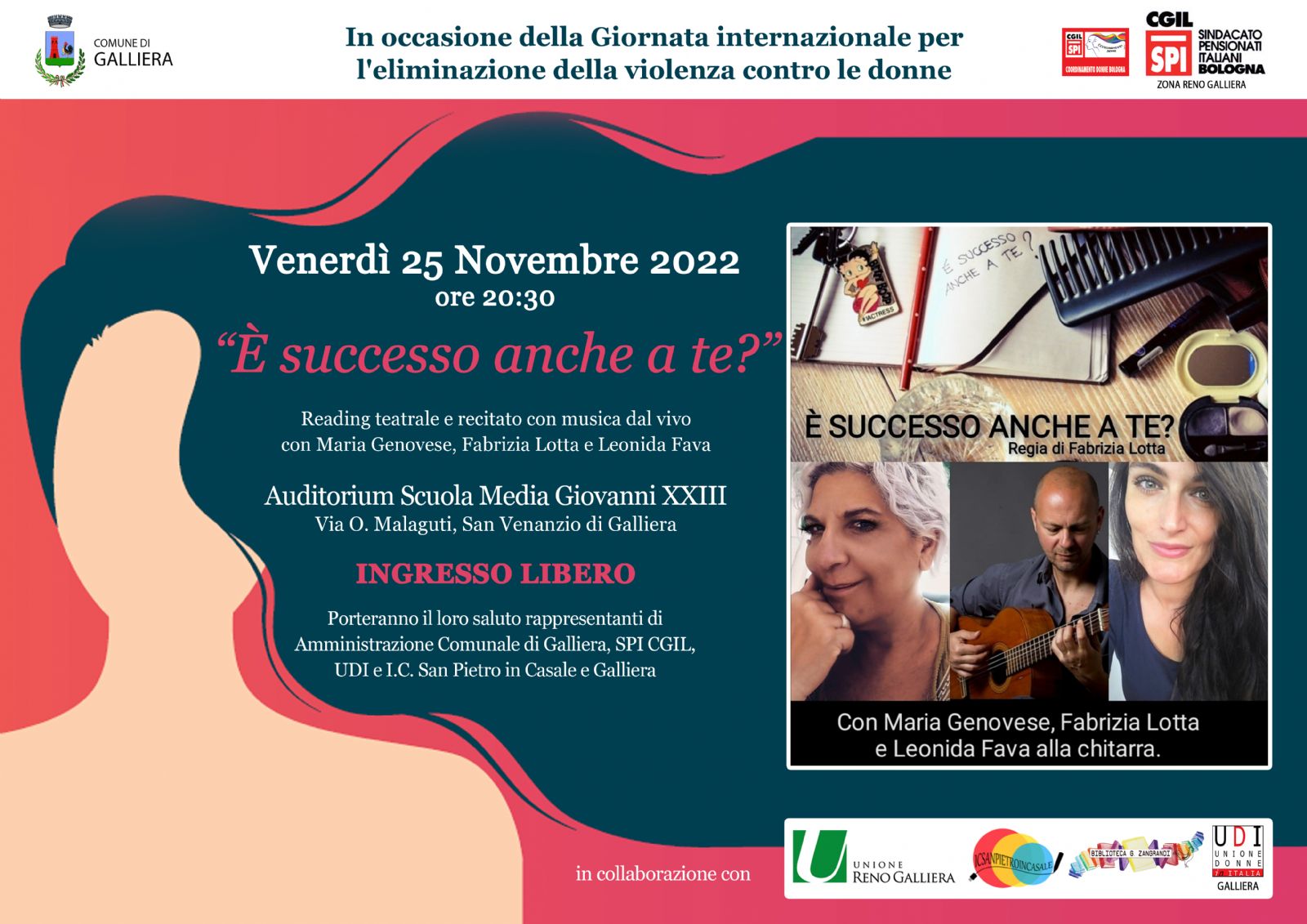 In occasione della Giornata internazionale per l'eliminazione della violenza contro le donne va in scena "E' SUCCESSO ANCHE A TE?".