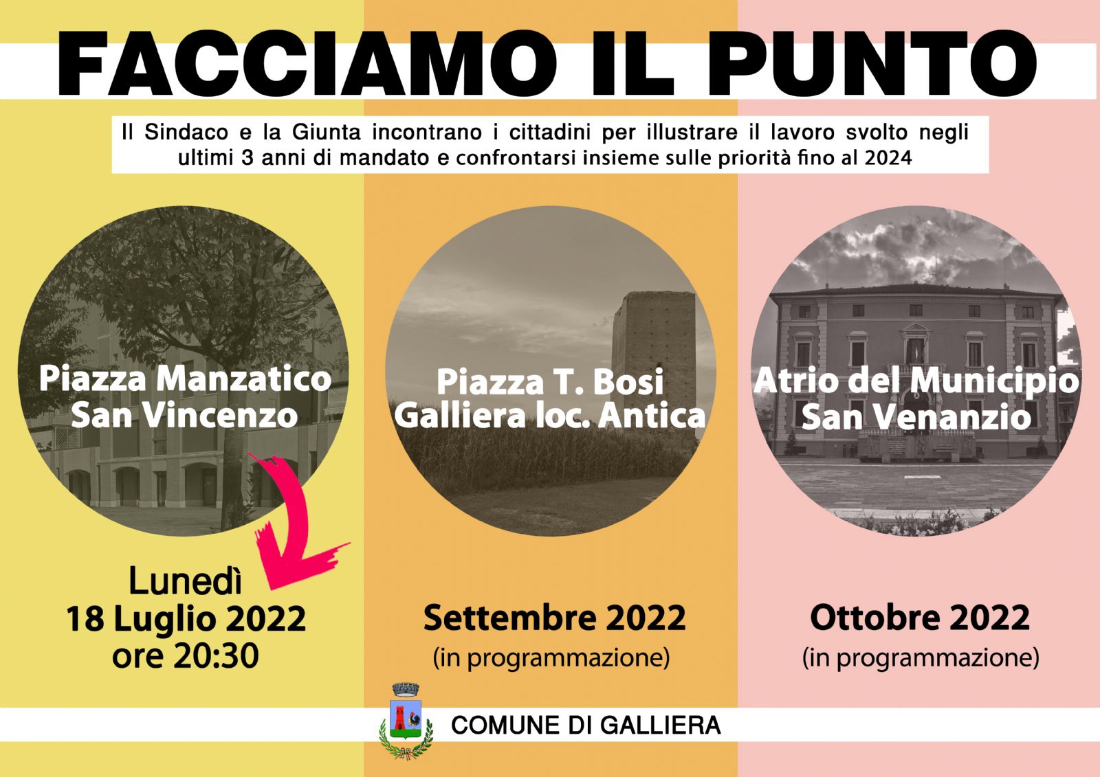 Il Sindaco e la Giunta incontrano i cittadini per illustrare il lavoro svolto negli ultimi 3 anni di mandato e confrontarsi insieme sulle priorità fino al 2024.