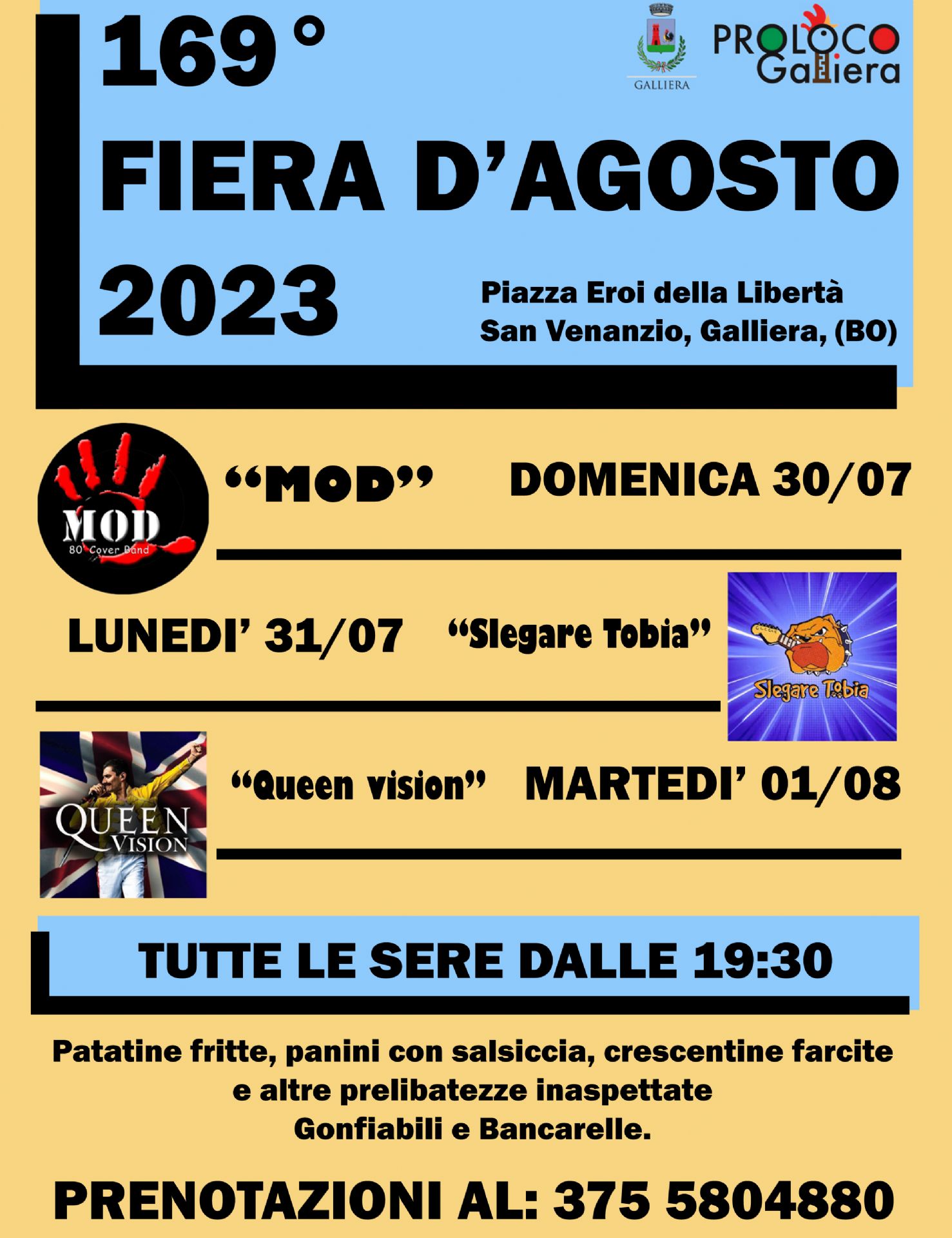 Pro Loco Galliera vi aspetta in Piazza Eroi della Libertà a San Venanzio con la 169° Edizione della FIERA D'AGOSTO.