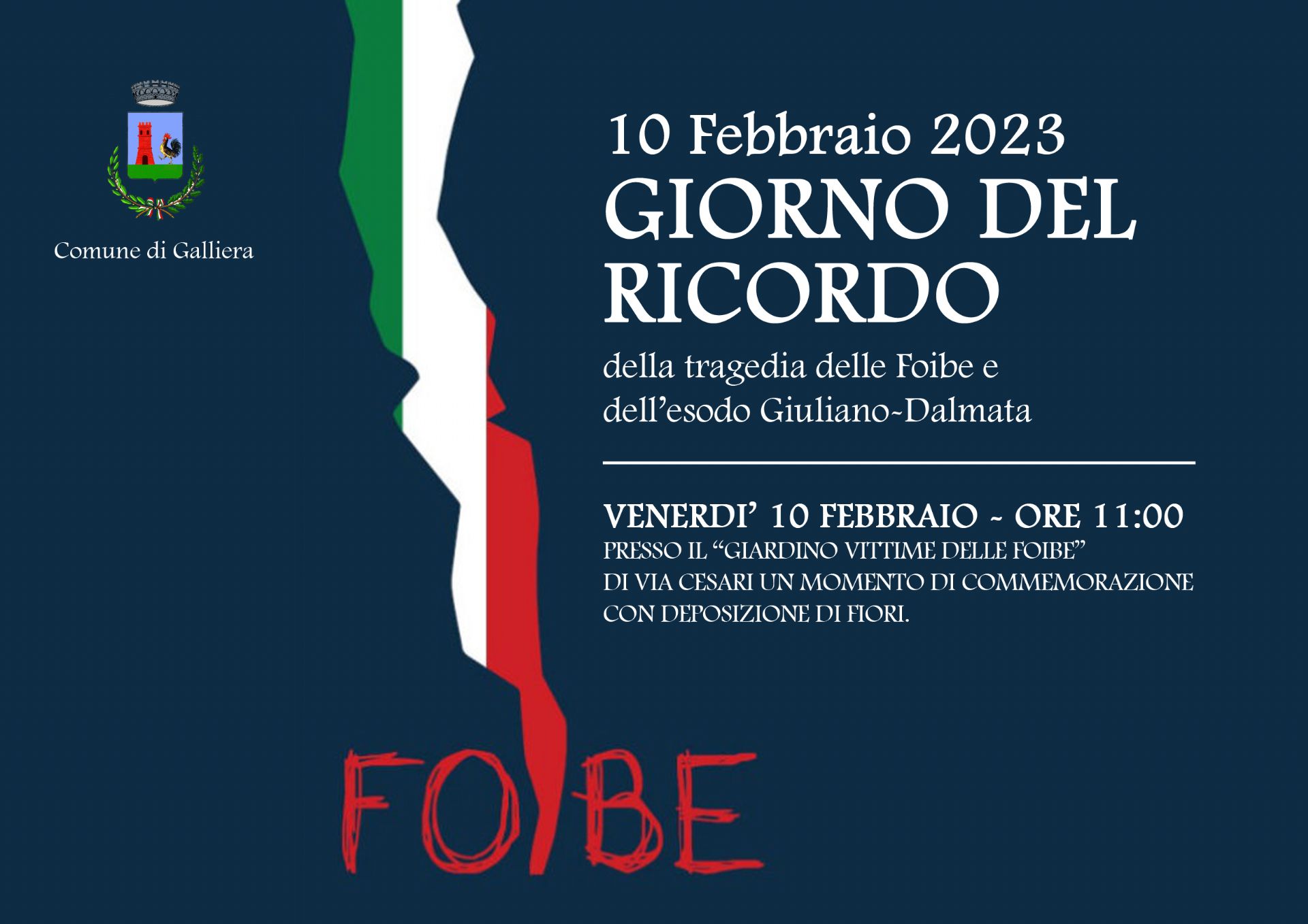 Giorno del Ricordo della tragedia delle Foibe e dell’esodo Giuliano-Dalmata.