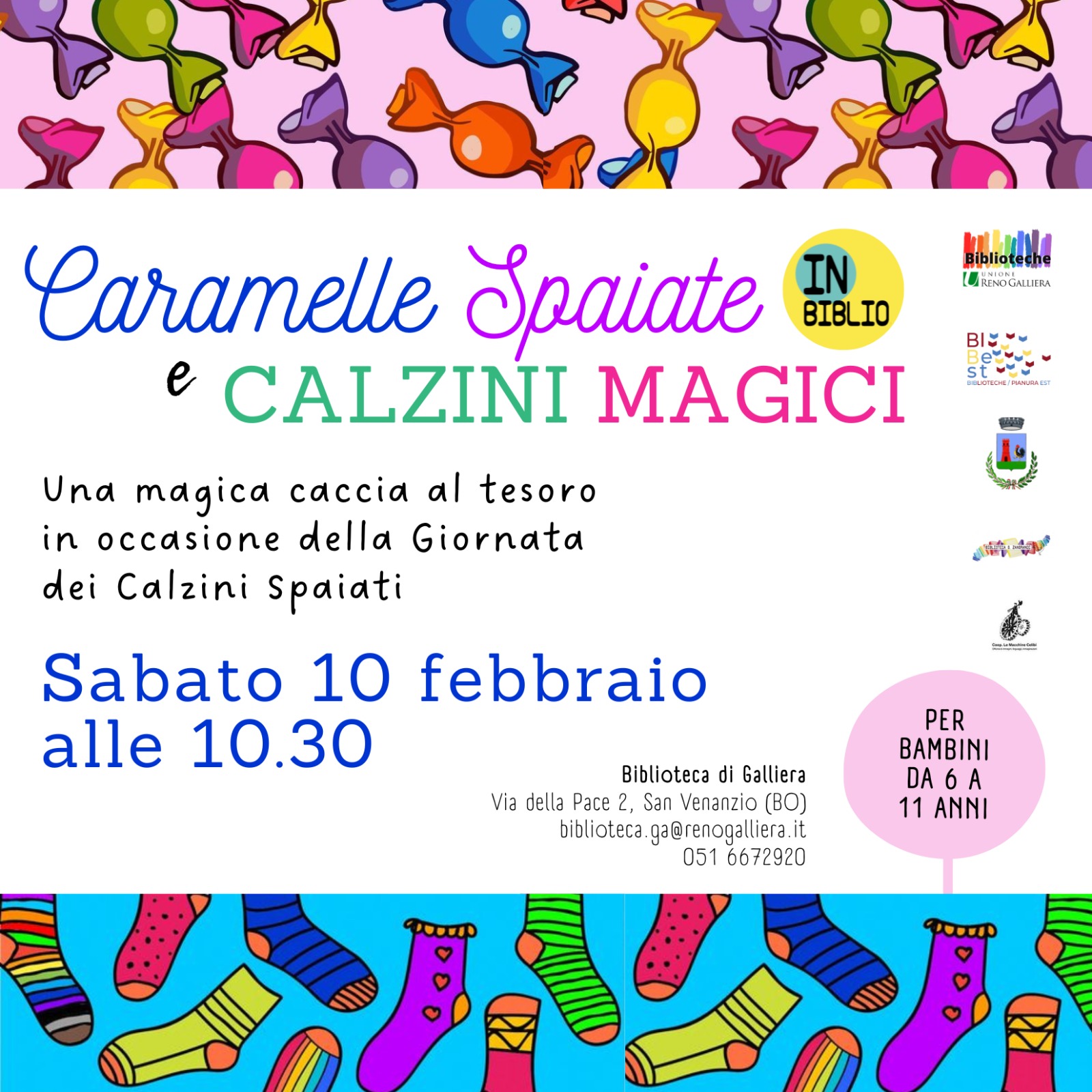 In occasione della Giornata dei Calzini Spaiati, 𝗦𝗔𝗕𝗔𝗧𝗢 𝟭𝟬 𝗙𝗘𝗕𝗕𝗥𝗔𝗜𝗢 𝗔𝗟𝗟𝗘 𝟭𝟬.𝟯𝟬 vi aspettiamo IN-Biblio per una mattinata tra “caramelle spaiate” e “calzini magici” con una caccia al tesoro per tutti quelli che sapranno osservare con occhi nuovi ciò che hanno attorno, scoprendo così la dolcezza della diversità.