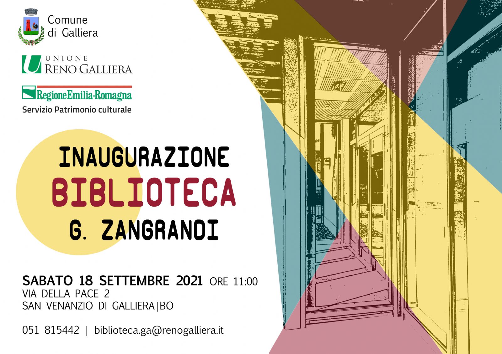 l’Amministrazione Comunale è lieta di comunicare che SABATO 18 SETTEMBRE alle ore 11.00 avrà luogo l’inaugurazione della nuova BIBLIOTECA DI GALLIERA "G. Zangrandi".