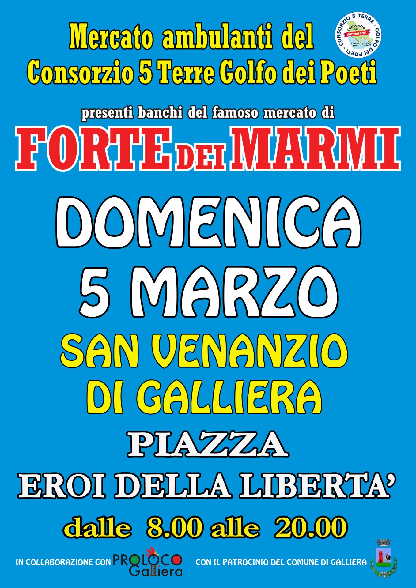 Tornano a Galliera i banchi del Mercato di Forte dei Marmi con il CONSORZIO CINQUE TERRE GOLFO DEI POETI.