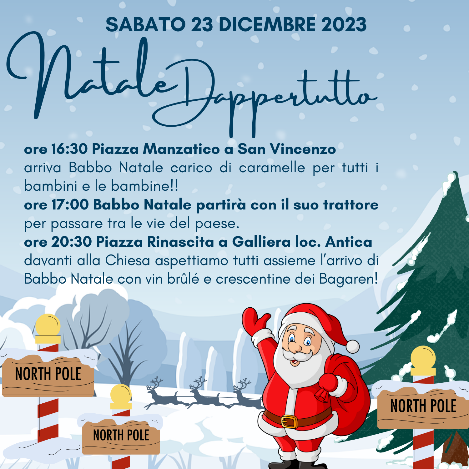 - ORE 17:00 Babbo Natale partirà con il suo trattore per passare tra le vie del paese.