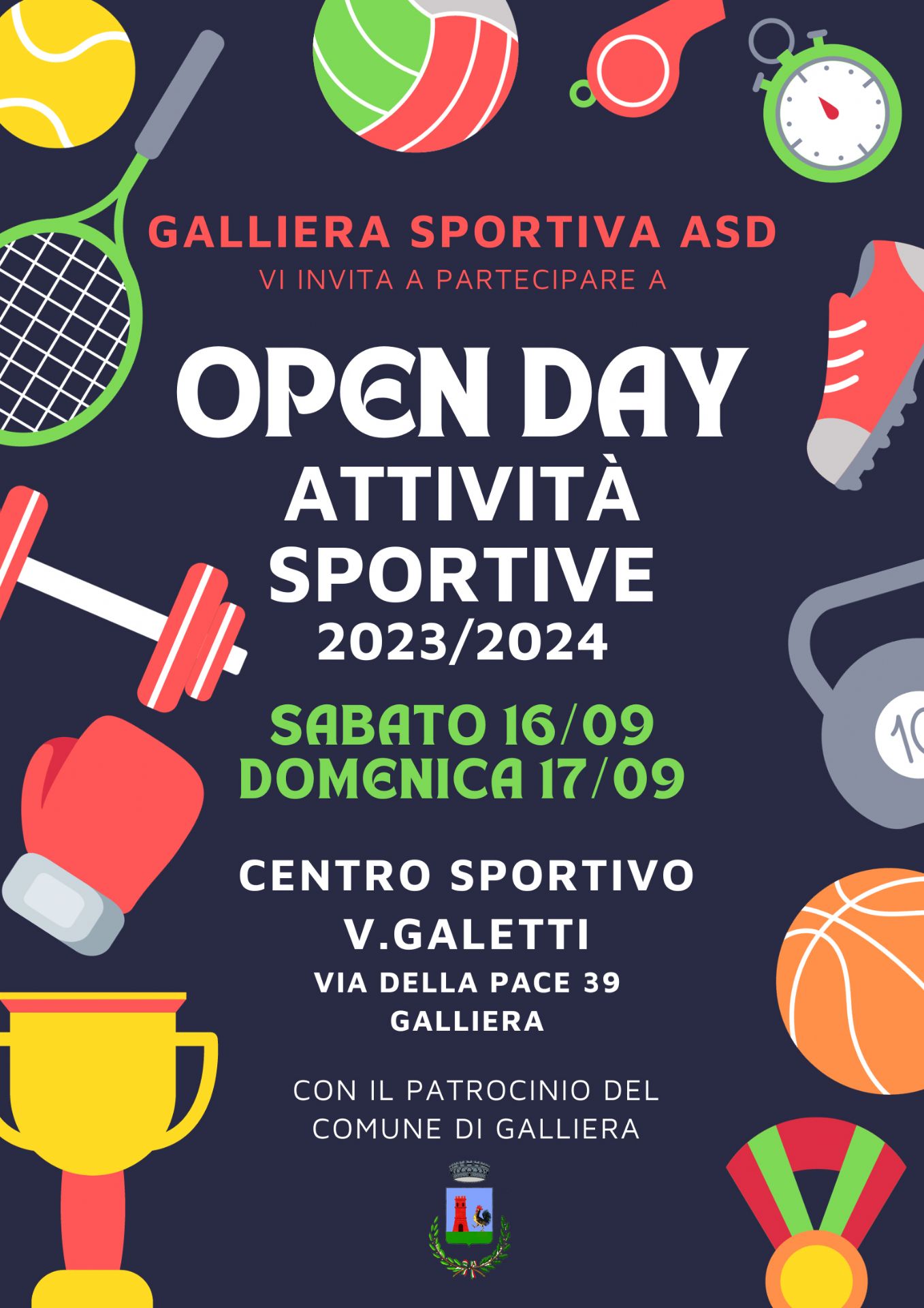 GALLIERA SPORTIVA ASD vi invita a partecipare all'OPEN DAY delle attività sportive - stagione 2023/2024.