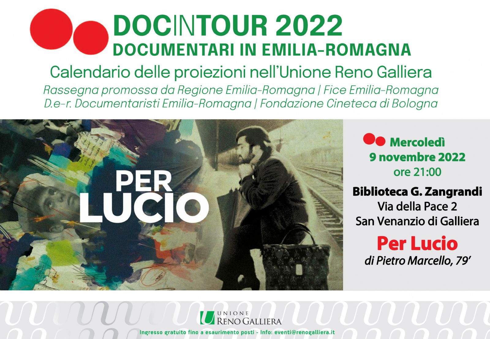 L'appuntamento è presso la Biblioteca G. Zangrandi a San Venanzio di Galliera Mercoledì 9 Novembre alle 21:00 con "PER LUCIO" di Pietro Marcello.