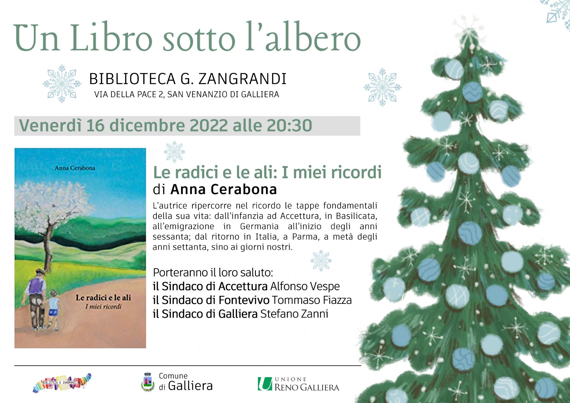 Venerdì 16 Dicembre - ore 20:30 in Biblioteca G. Zangrandi la presentazione del libro "Le radici e le ali: i miei ricordi"di ANNA CERABONA.