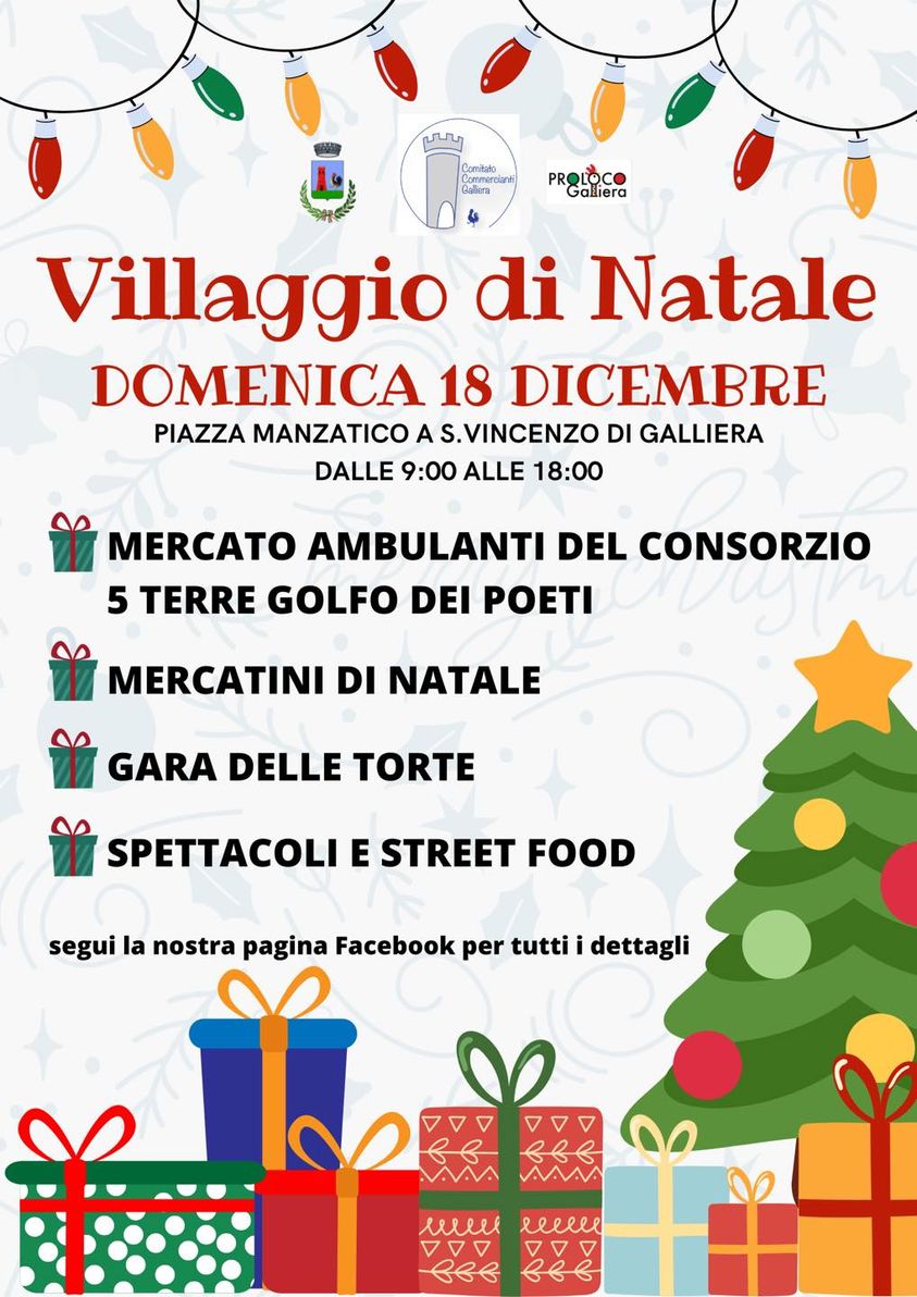 Domenica 18 dicembre in piazza Manzatico a San Vincenzo di Galliera organizzato dal Comitato Commercianti Galliera.
