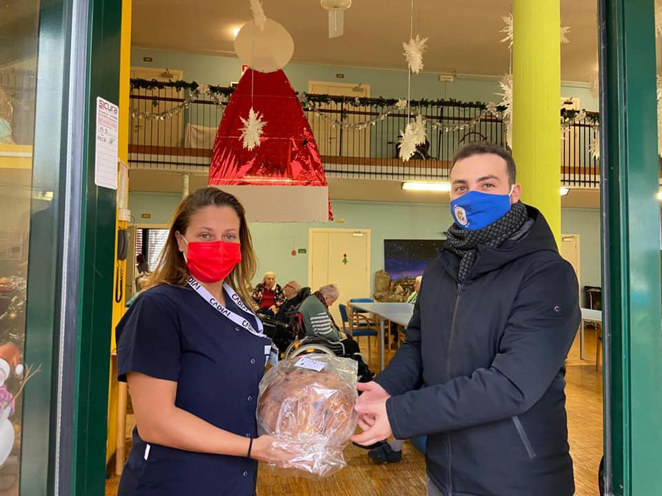 Nella foto il sindaco Stefano Zanni consegna un panettone alla responsabile della struttura.