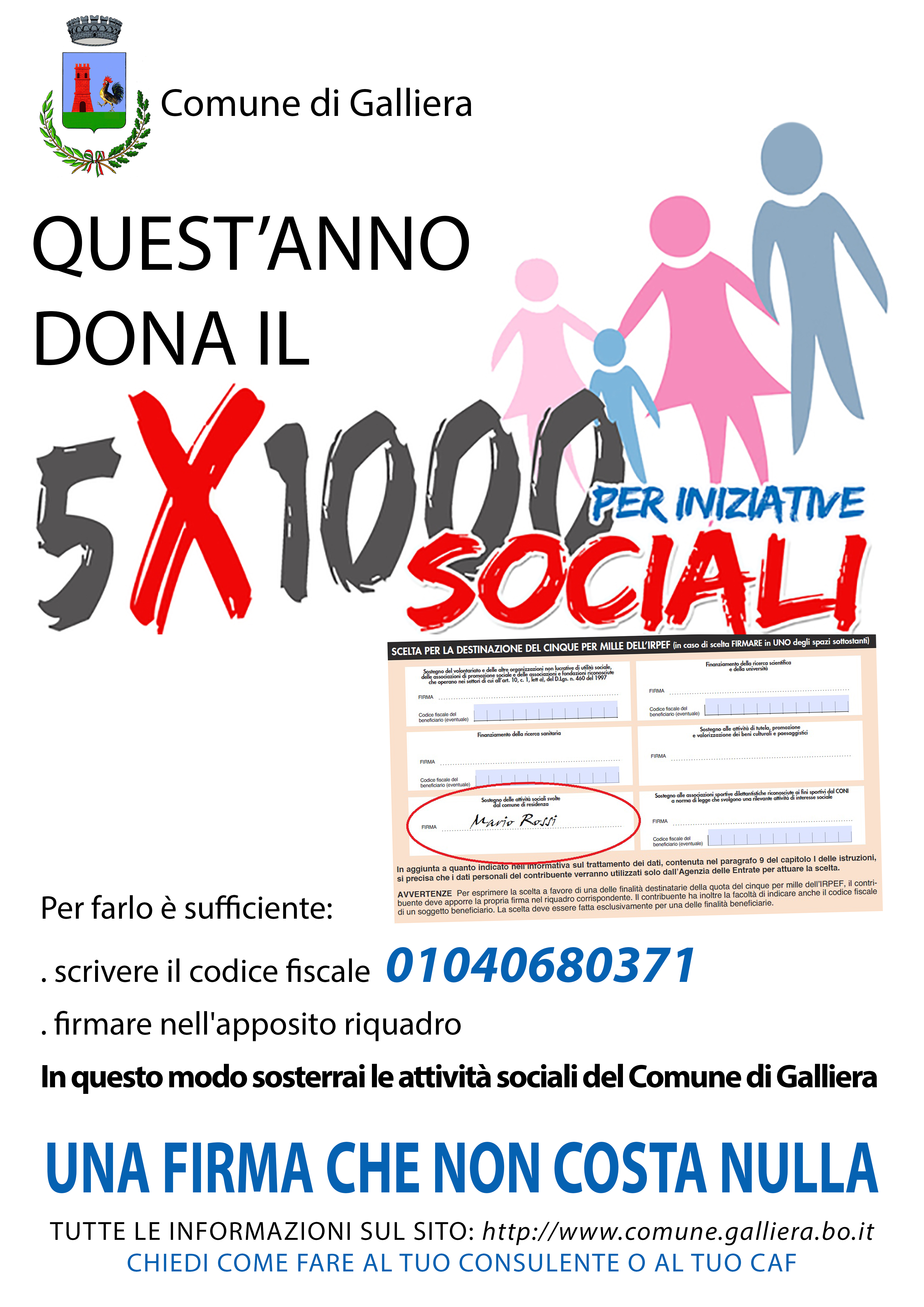 Anche quest’anno la legge finanziaria consente di destinare al Comune di residenza il 5 per mille delle imposte IRPEF per sostenere le iniziative sociali.