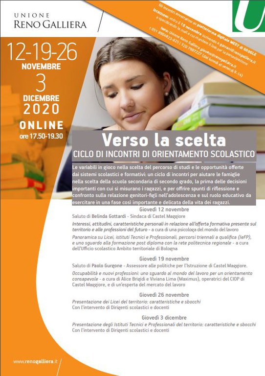 Verso la scelta. Ciclo di incontri di orientamento scolastico: Giovani - Educazione e scuola - Genitorialità