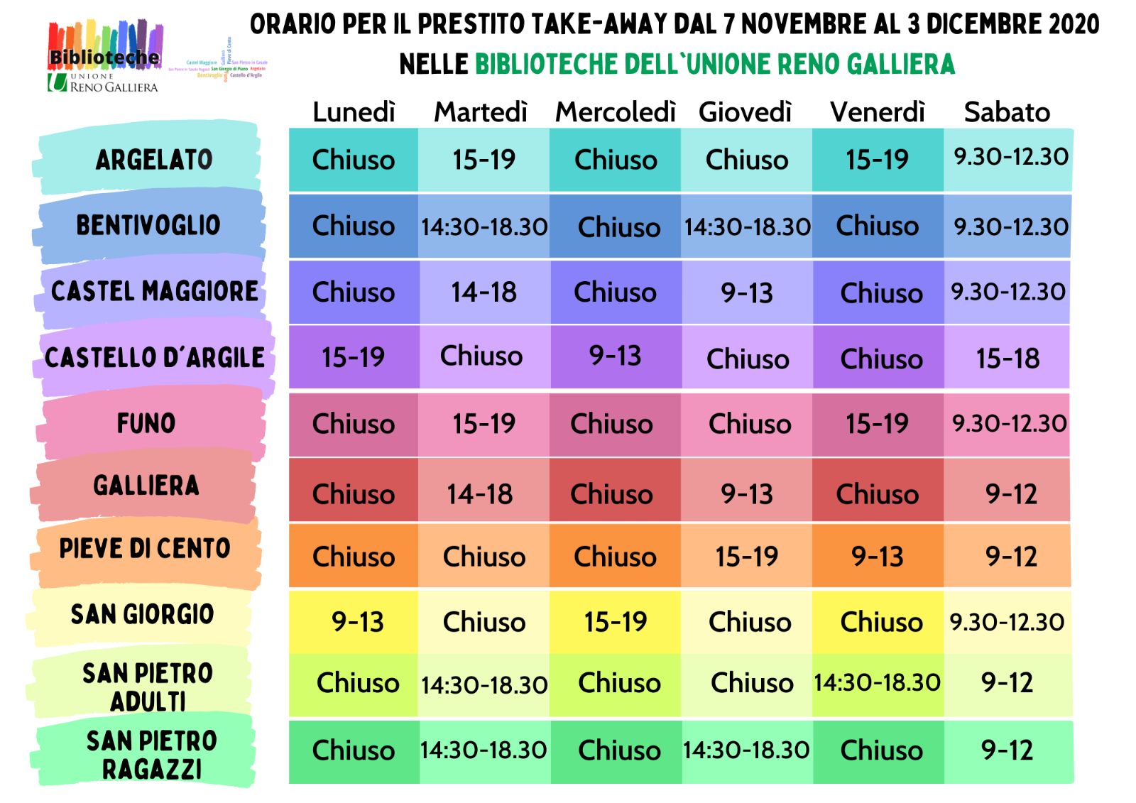 Dal 9 novembre al 3 dicembre sarà possibile usufruire in sicurezza del servizio di prestito bibliotecario take-away. Ecco come fare: