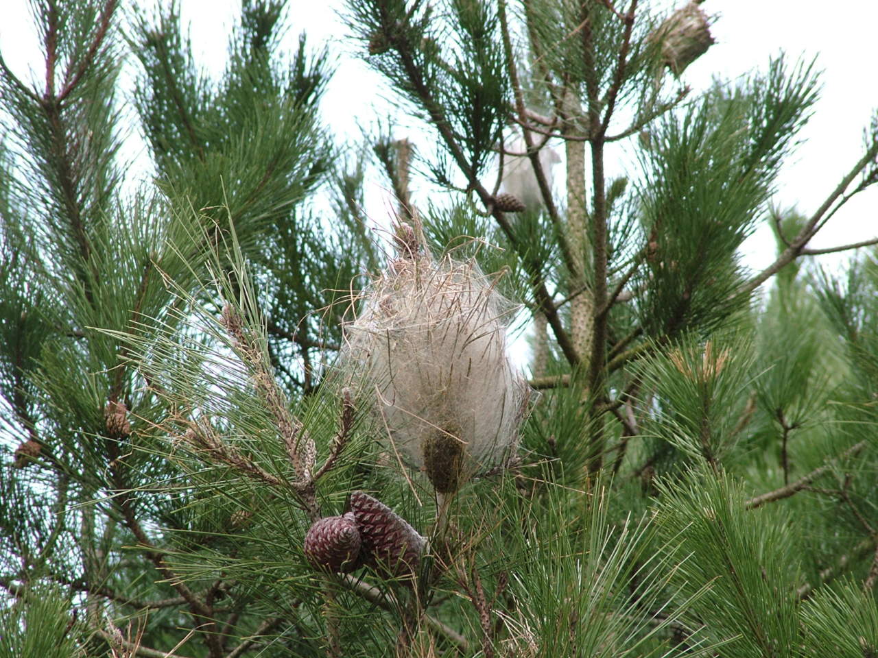 Durante l'inverno può capitare di vedere, all’estremità dei rami di pini o cedri, i caratteristici “nidi” invernali della Processionaria del pino (Traumatocampa pityocampa), riconoscibili per il colore biancastro, e per il diametro di circa 10 – 20 centimetri.