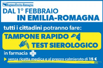 Covid, dal 1^ febbraio in Emilia-Romagna tampone rapido o sierologico possibile per tutti in farmacia a prezzo calmierato
