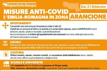Emilia-Romagna in zona ARANCIONE dal 21 febbraio.
