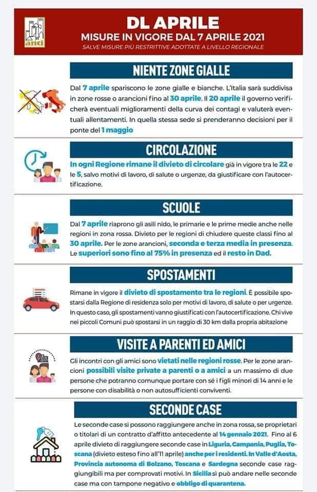 🔸 Confermata, dal 7 aprile, la riapertura degli asili nido, scuole d'infanzia, delle primarie e delle prime medie anche nelle regioni in zona rossa.
