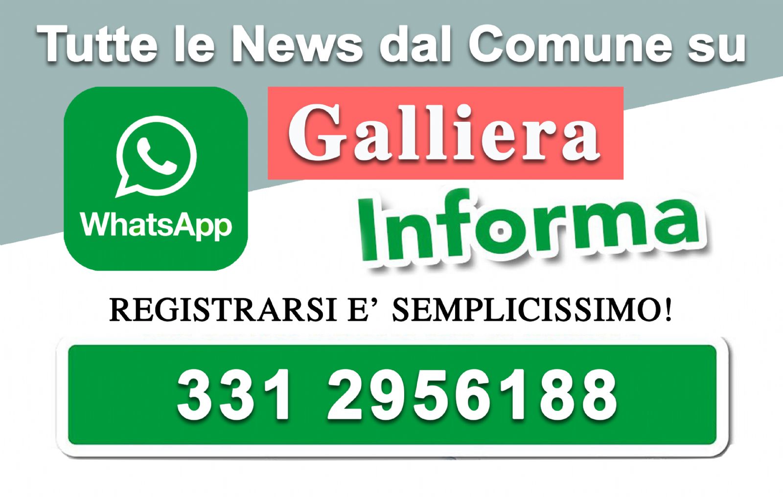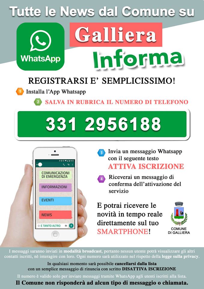 • Inviare un messaggio Whatsapp con scritto ATTIVA ISCRIZIONE.