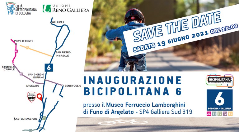 Sabato 19 giugno si svolgerà la cerimonia di inaugurazione del sistema di piste ciclopedonali della Reno Galliera: la linea 6 della Bicipolitana bolognese che unisce Bologna a Galliera e le relative trasversali.