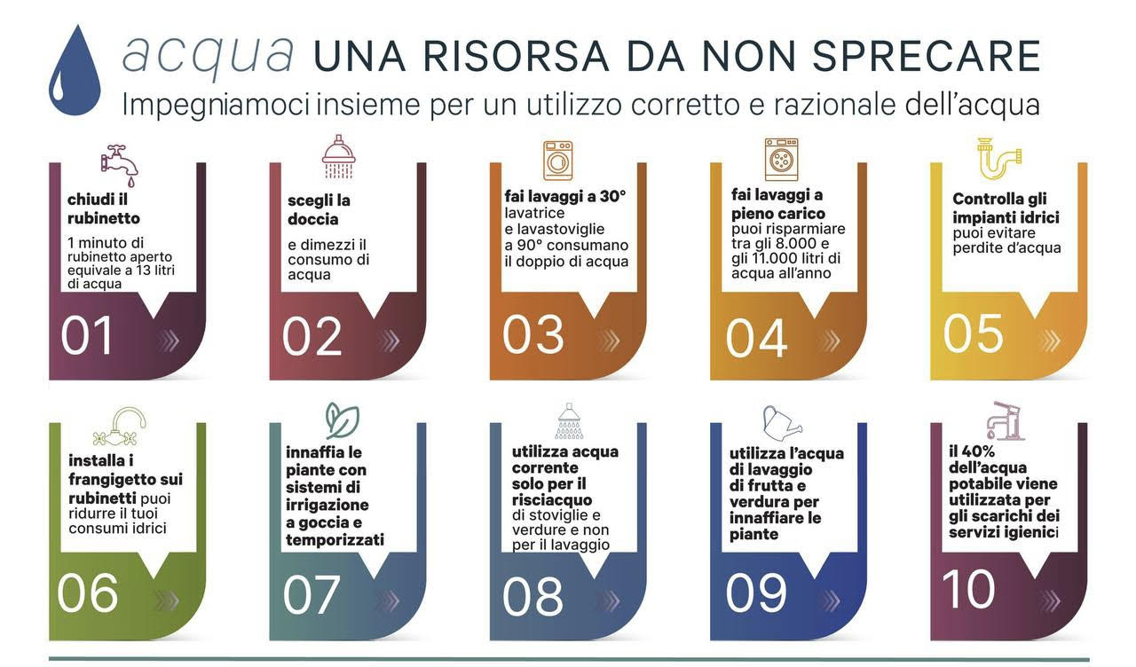 Condividiamo 10 consigli utili per contribuire alla riduzione dei consumi idrici attraverso una comunicazione di Città Metropolitana di Bologna.