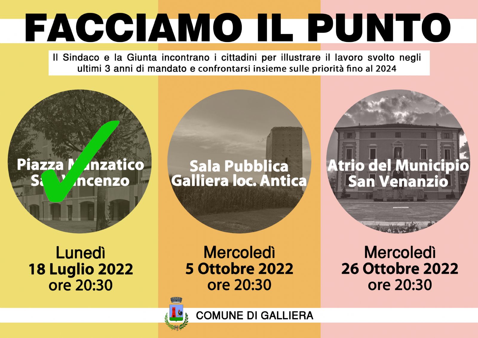 Il Sindaco e la Giunta incontrano i cittadini per illustrare il lavoro svolto negli ultimi 3 anni di mandato e confrontarsi insieme sulle priorità fino al 2024.