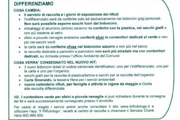Di seguito una breve sintesi delle novità che saranno introdotte, delle modalità ed i tempi di attuazione, fra cui a titolo esemplificativo la variazione dell'orario di raccolta che passerà da notturno a diurno.