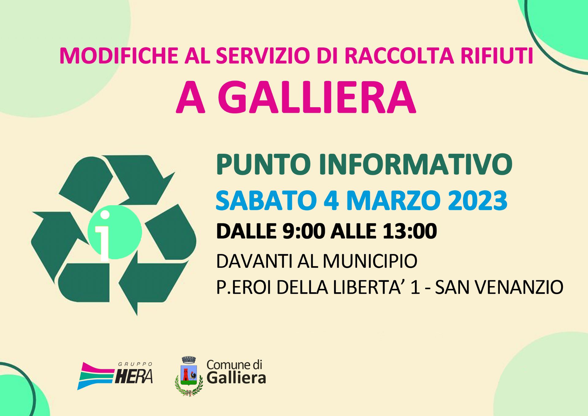 Modifiche al servizio di raccolta rifiuti a Galliera: PUNTO INFORMATIVO