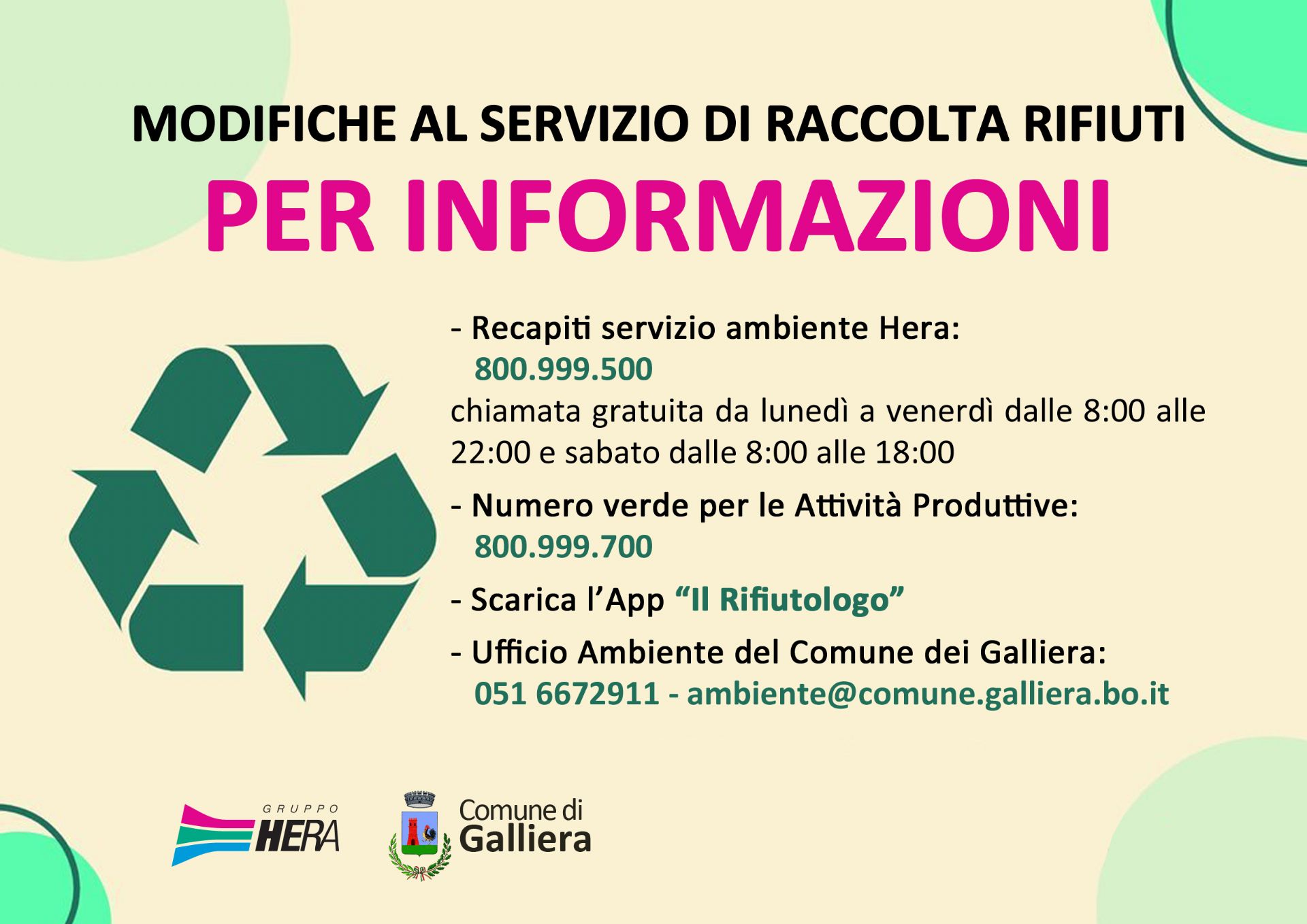 ♻️ 𝗠𝗼𝗱𝗶𝗳𝗶𝗰𝗵𝗲 𝗮𝗹 𝘀𝗲𝗿𝘃𝗶𝘇𝗶𝗼 𝗱𝗶 𝗿𝗮𝗰𝗰𝗼𝗹𝘁𝗮 𝗿𝗶𝗳𝗶𝘂𝘁𝗶 𝗮 𝗚𝗮𝗹𝗹𝗶𝗲𝗿𝗮