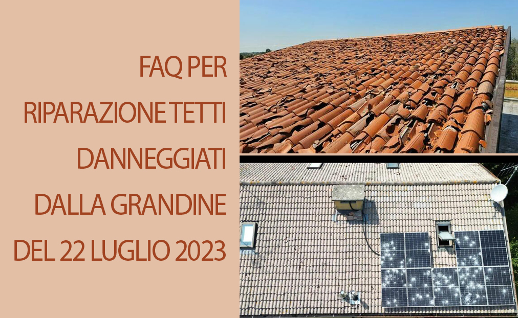 A seguito della grandinata dello scorso 22 Luglio 2023, forniamo una lista indicativa di FAQ con alcune risposte alle domande frequenti, utile ai privati e alle aziende per gli adempimenti necessari alle procedure di riparazione e sostituzione delle coperture dei tetti danneggiati dalla grandine.