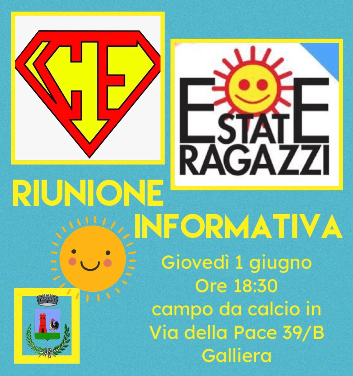 in vista dell’estate, il Comune di Galliera, in collaborazione con il Centro Estivo Galliera e la Parrocchia, organizza una riunione informativa per illustrare le iniziative estive rivolte a tutti i bambini e gli adolescenti del territorio.