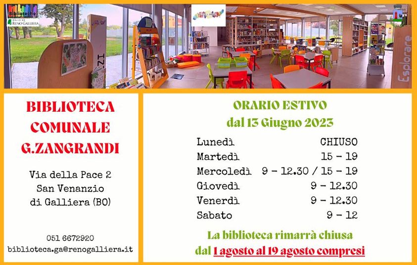 Da martedì 13 giugno entrerà in vigore l'orario estivo della biblioteca!