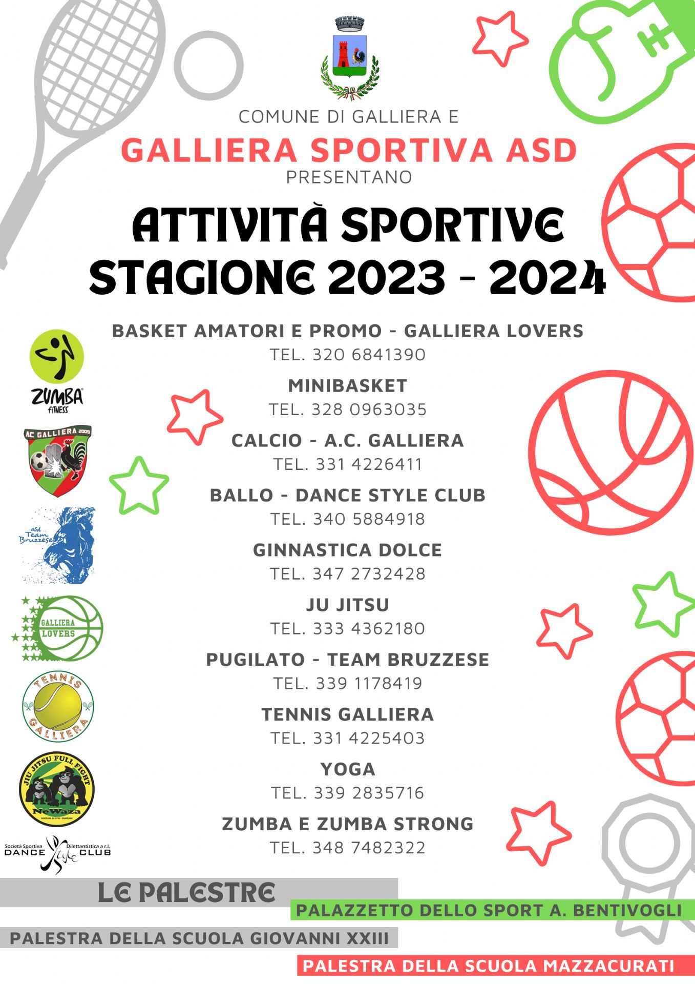 Comune di Galliera e Galliera Sportiva ASD presentano le ATTIVITA' SPORTIVE 2023-2024 che si svolgeranno negli impianti sportivi di Galliera, presso: