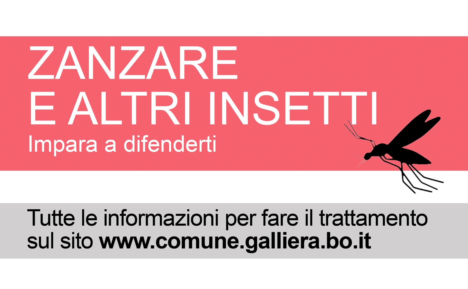 Anche quest'anno il programma di lotta alle zanzare prevede lo svolgimento di trattamenti larvicidi nelle caditoie stradali e lungo i canali (entrambi effettuati dal Comune di Galliera) e dei tombini siti nelle aree private (effettuati dai cittadini). I trattamenti adulticidi invece sono previsti solo in casi eccezionali, su indicazione di AUSL al fine di evitare fenomeni di resistenza negli insetti.