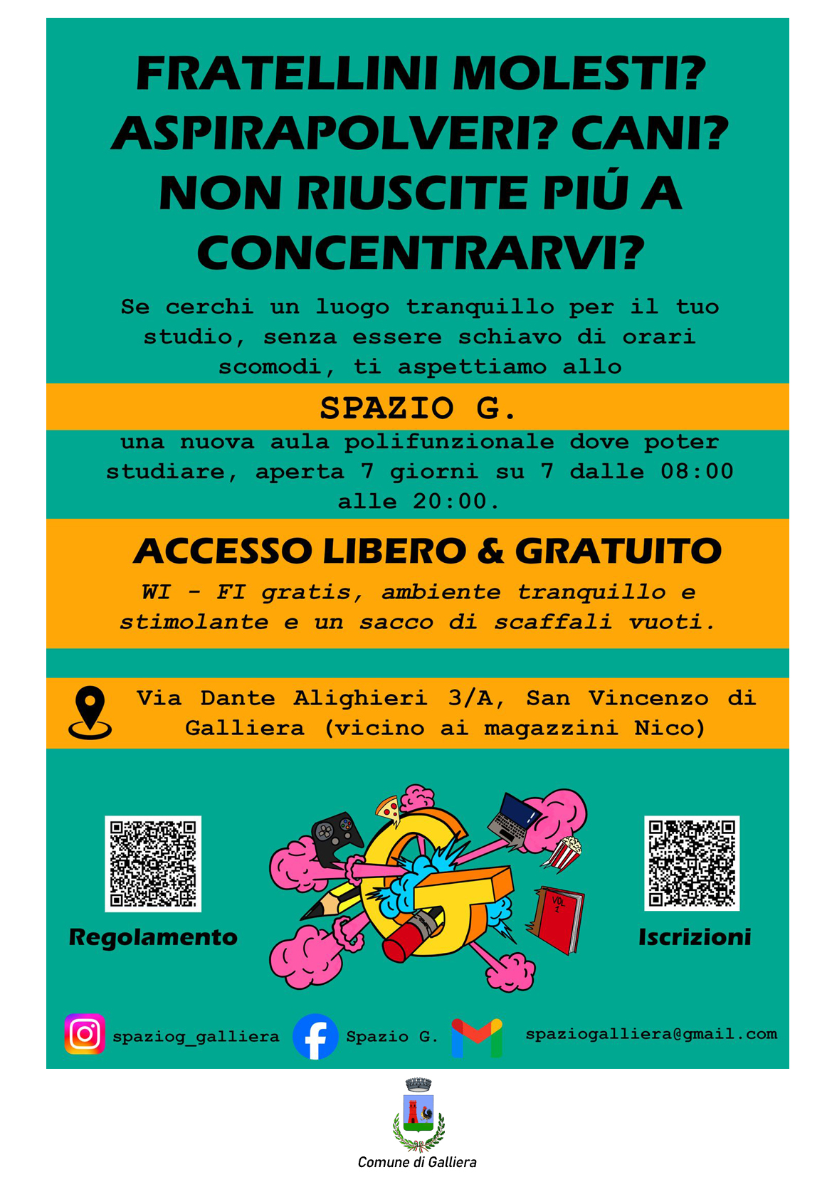 Lo Spazio G. è uno spazio polivalente del Comune di Galliera dedicato a giovani e universitari.