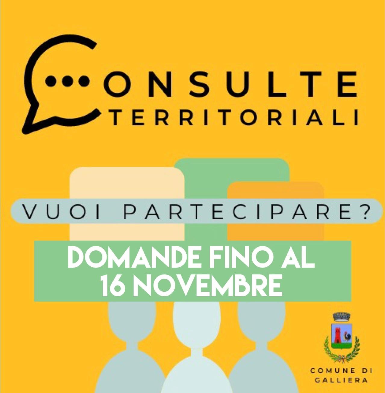 - inviandoli via mail a comune.galliera@pec.renogalliera.it indicando nell'oggetto: "Candidatura alla nomina a componente delle Consulte territoriali" e allegando copia di documento di riconoscimento.