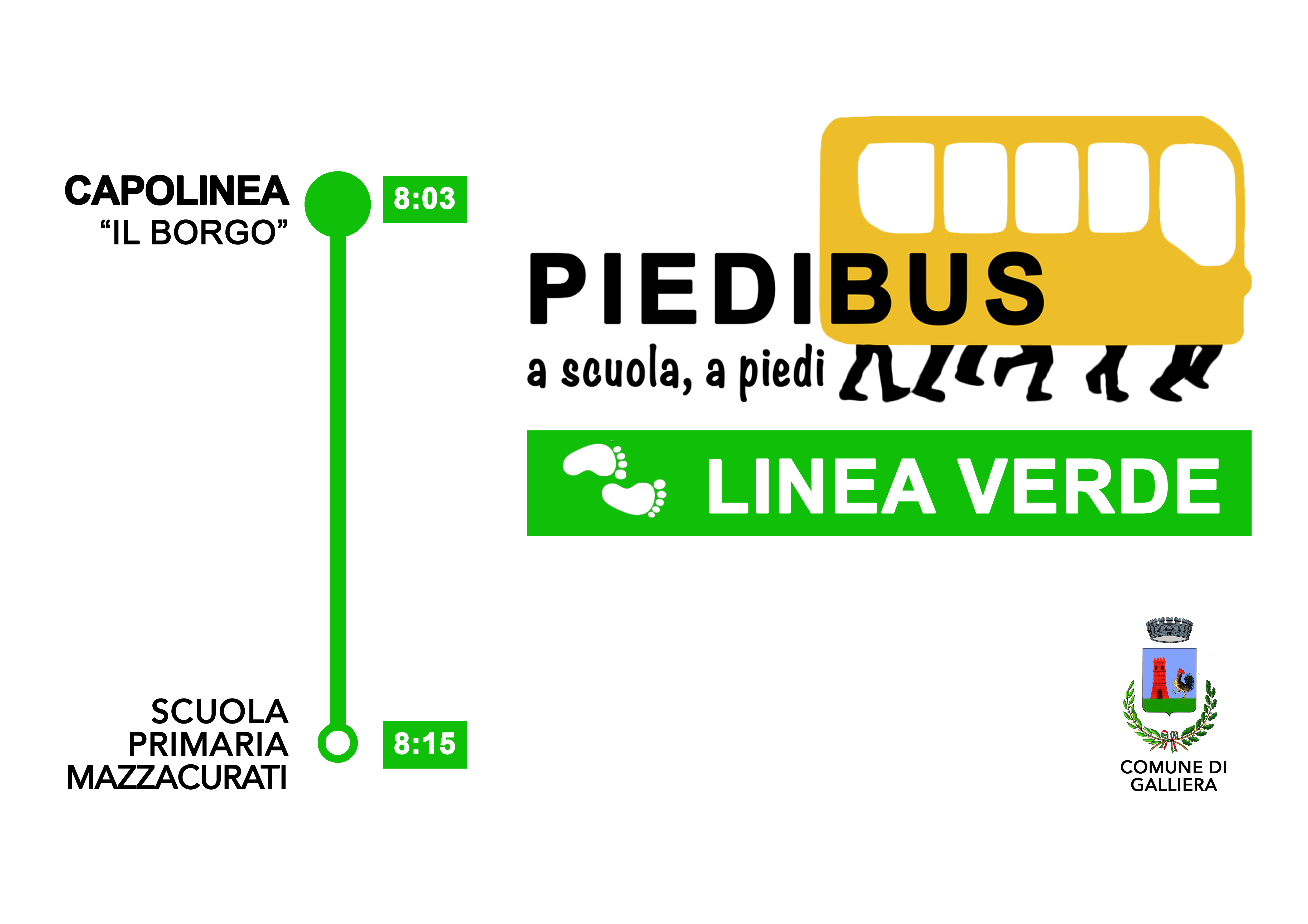 È un servizio gratuito, ecologico e divertente organizzato per alunni della scuola primaria che prevede un percorso prestabilito con apposite fermate e orari. Le linee attualmente attive sono: