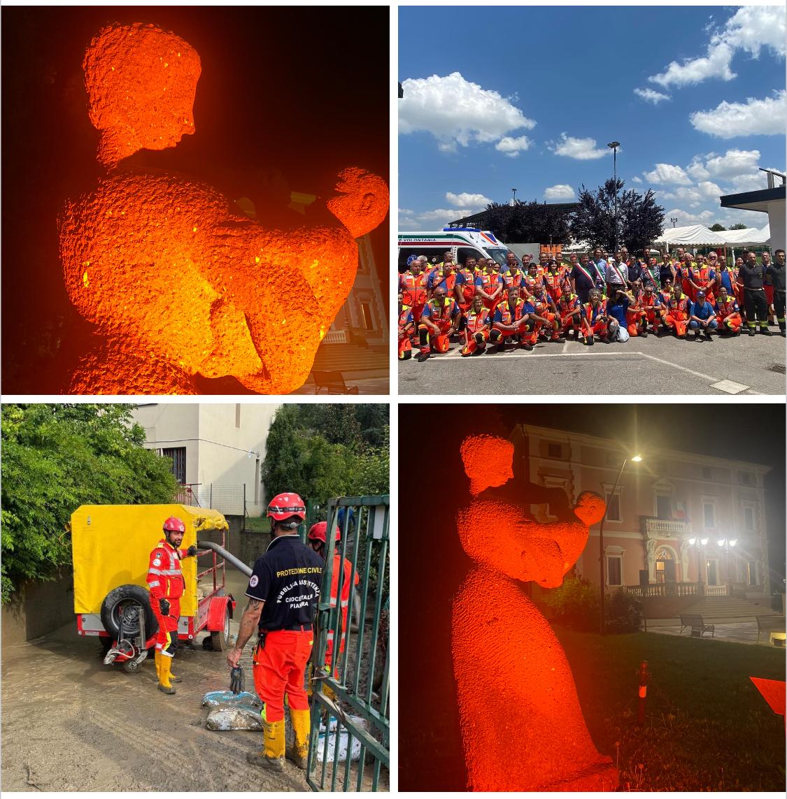 Grazie alla fondamentale presenza di CROCE ITALIA COMUNI DI PIANURA a Galliera possiamo toccare con mano tutti i giorni il grande lavoro di queste volontarie e volontari a servizio della collettività ed è per questo che – per festeggiare assieme ad ANPAS – abbiamo illuminato di ARANCIONE, colore delle divise dei volontari di pubblica assistenza, la Scultura di Renato Marino Mazzacurati in Piazza Eroi della Libertà.