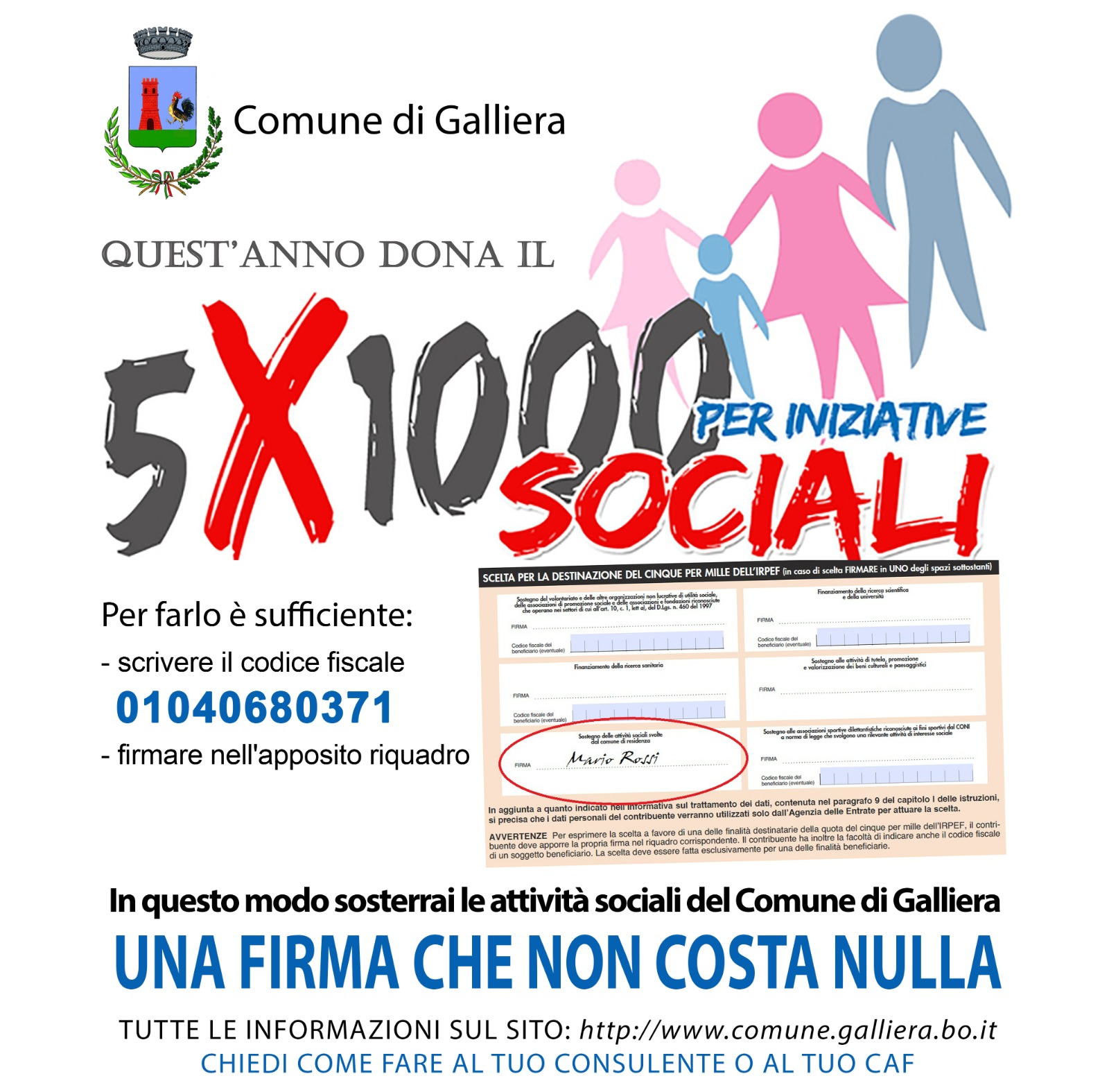 DONA IL TUO 5x1000 PER INIZIATIVE SOCIALI AL COMUNE DI GALLIERA