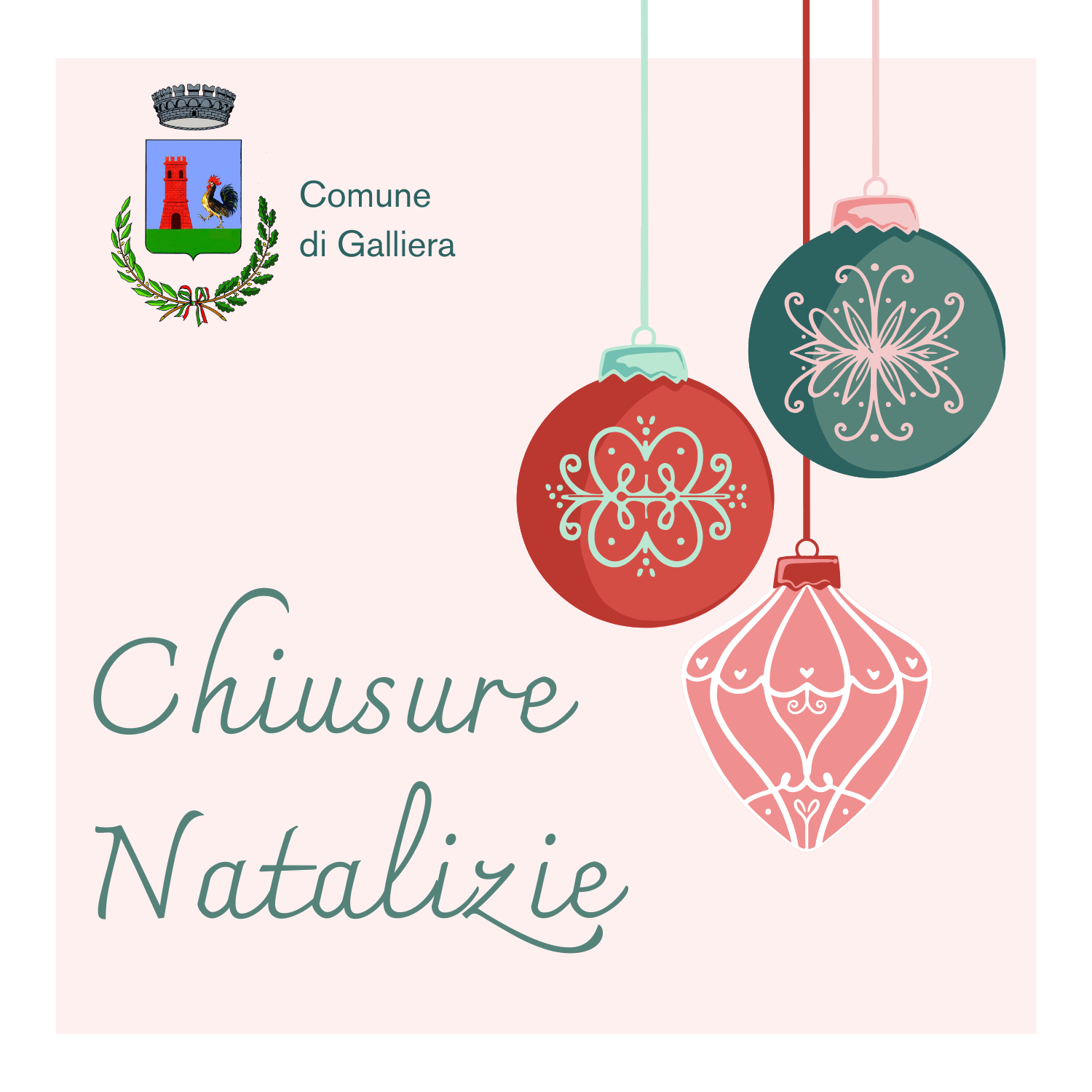 In occasione delle festività Natalizie saranno osservate le seguenti chiusure: