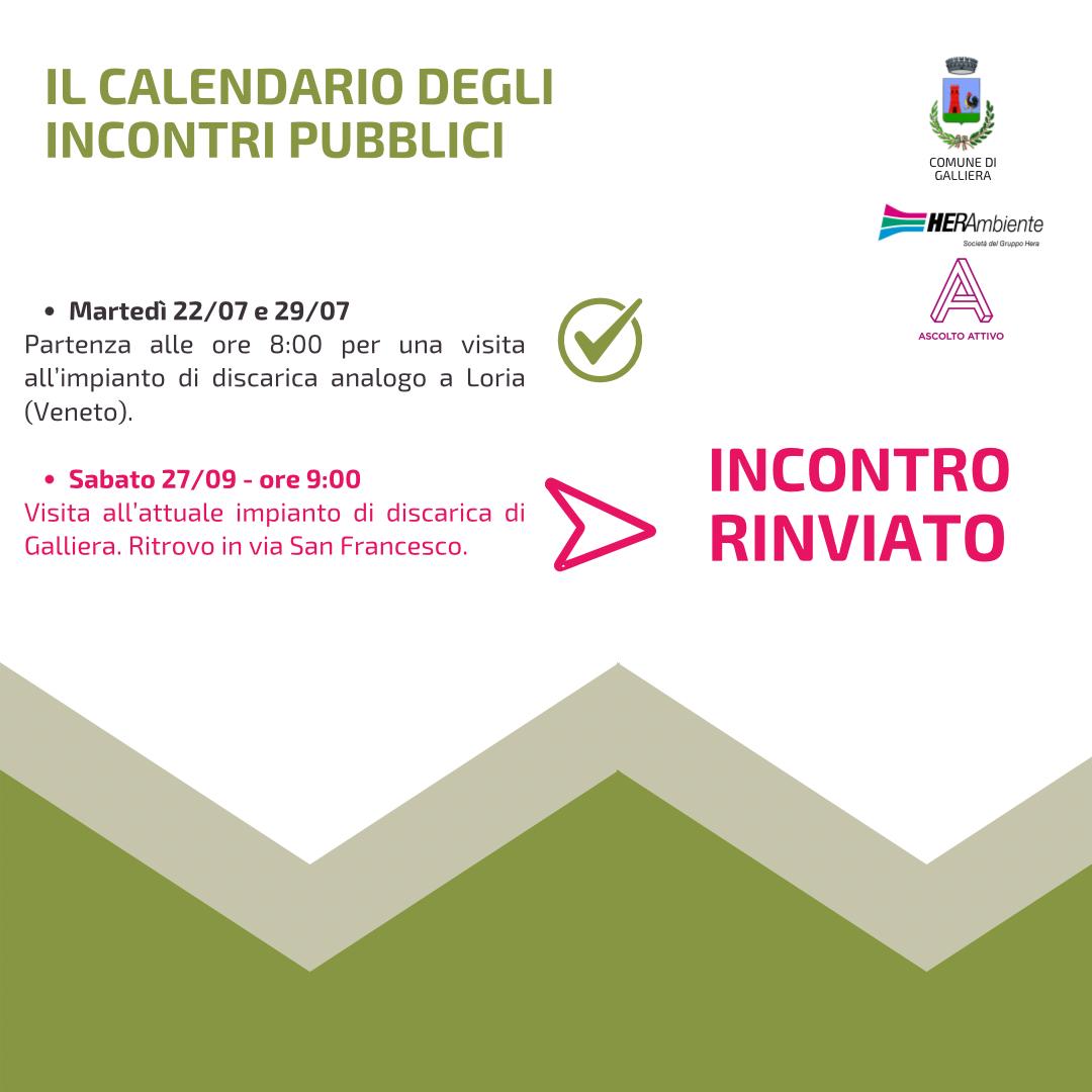 La visita all’attuale discarica di Galliera prevista per sabato 27/09 é rinviata a data da destinarsi.