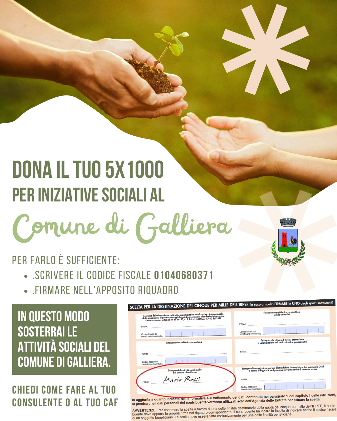 DONA IL TUO 5x1000 PER INIZIATIVE SOCIALI AL COMUNE DI GALLIERA