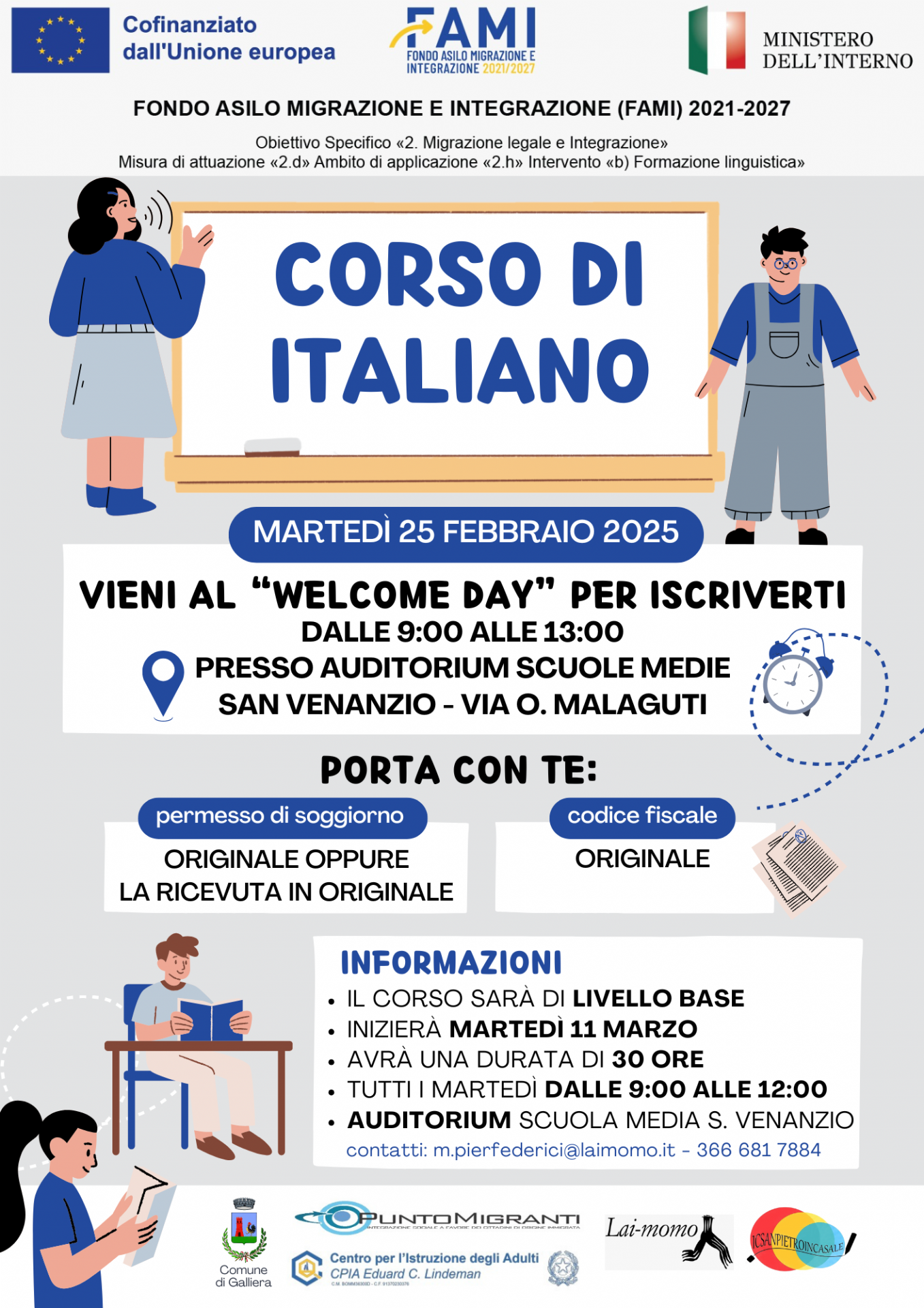 Gli insegnanti vi aspettano Martedì 25 febbraio dalle 9:00 alle 13:00 presso AUDITORIUM SCUOLE MEDIE a SAN VENANZIO - VIA O. MALAGUTI. Qui le indicazioni per l’Auditorium.